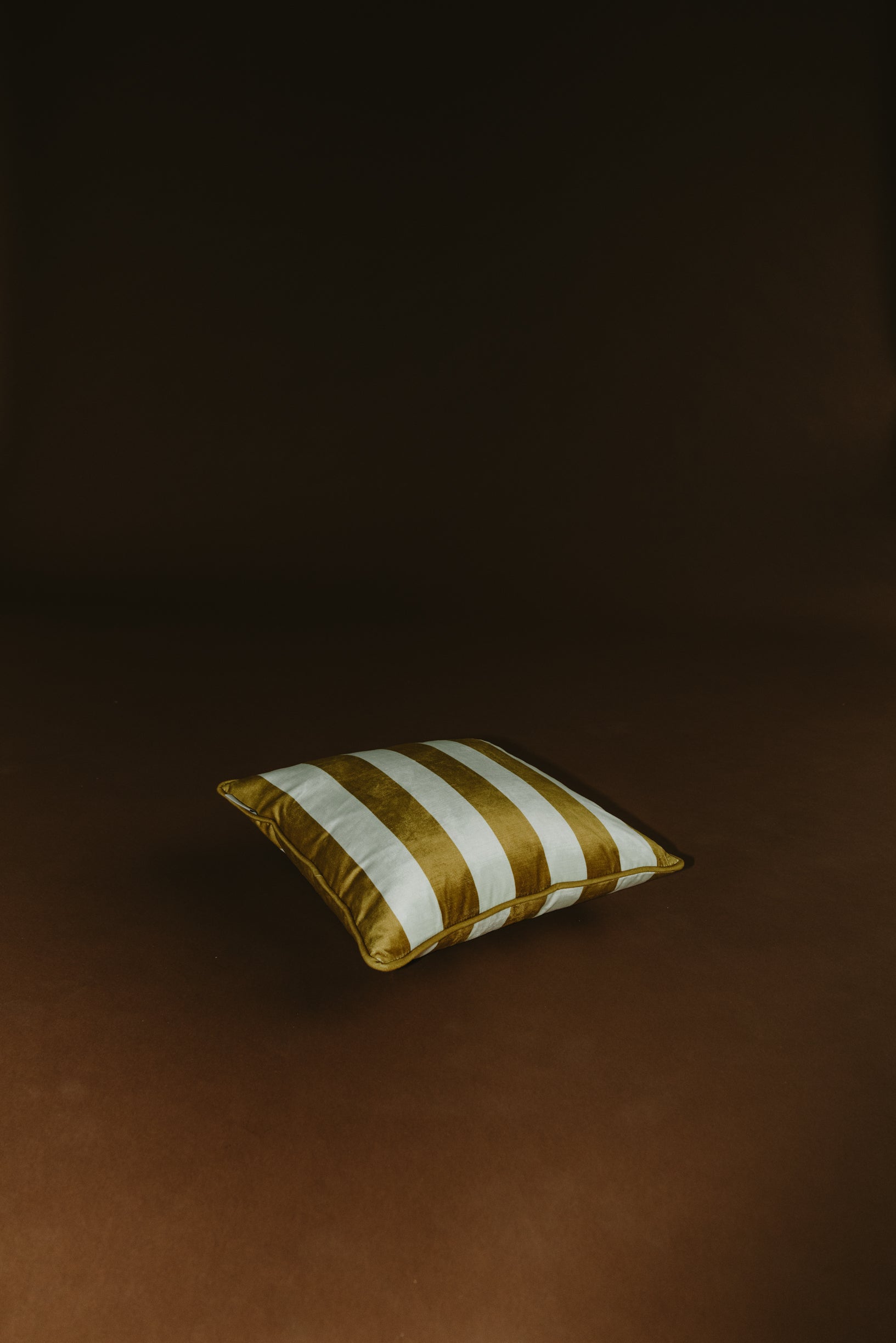 Classic Cushion in velvet with Midi stripe in Mint Cream & Zest.